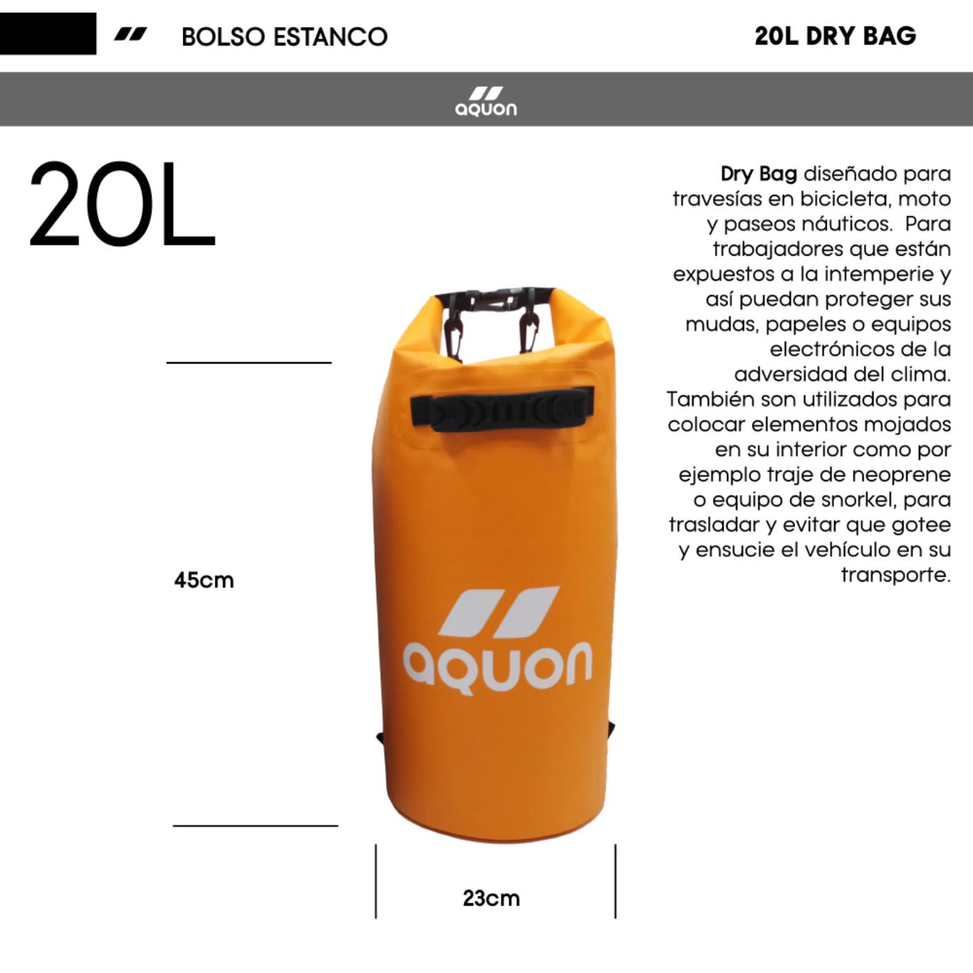 Bolso Estanco Impermeable 20 Litros – Dry Bag Aquon