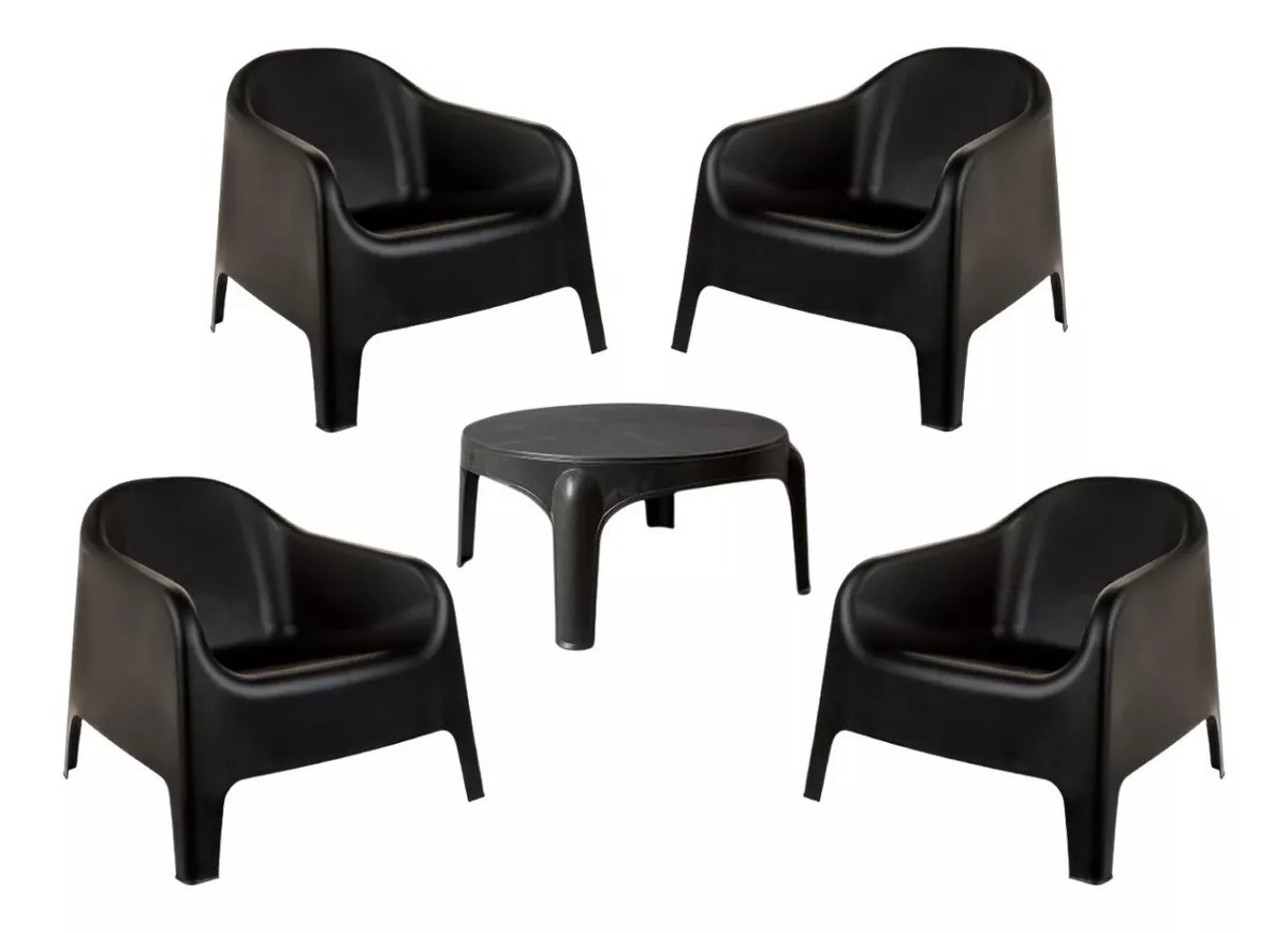 Combo 4 Sillones Skarpo + Mesa Ratona Plástico Mascardi