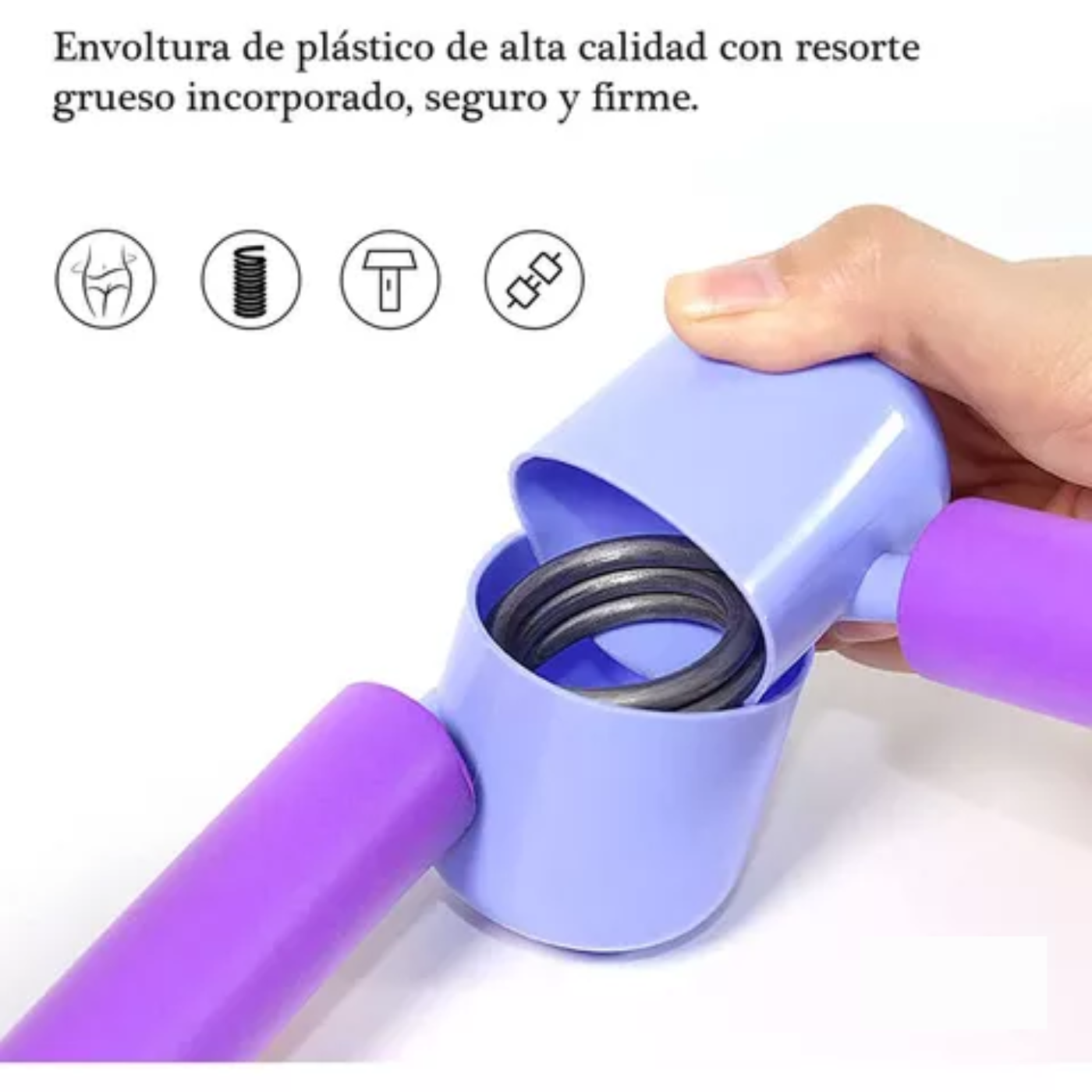 Con forma de mariposa, posee en su centro un mecanismo de resistencia, y su uso permite una gran variedad de ejercicios, que ayudan a fortalecer y reafirmar grupos musculares variados como brazos y piernas. Ideal para Yoga, Pilates, Fitness, Gimnasia y variedad de ejercicios!