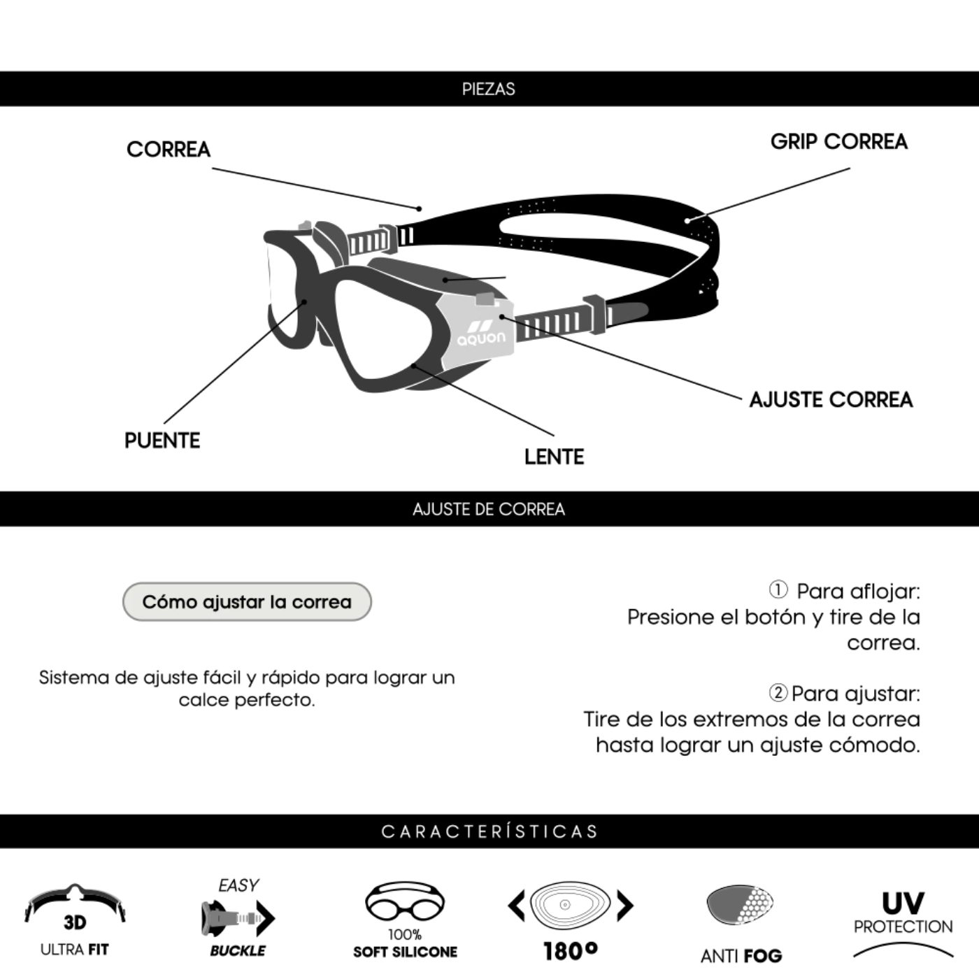 – ULTRA FIT: Diseño anatómico que se adapta perfectamente a tu rostro. Evita el ingreso de agua permitiendo enfocarse en la técnica sin distracciones.