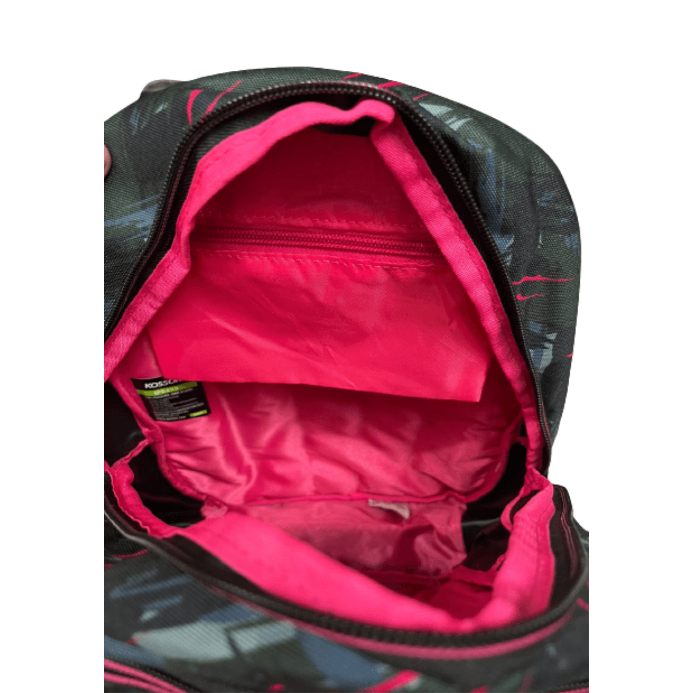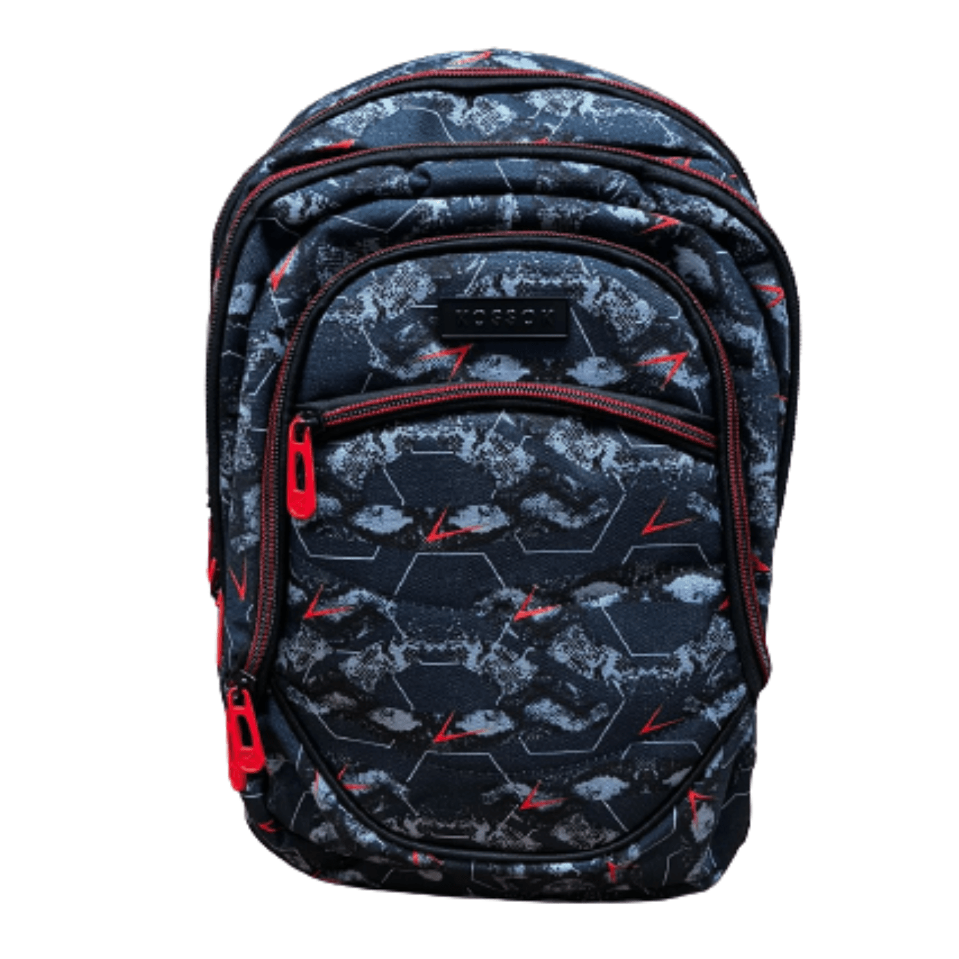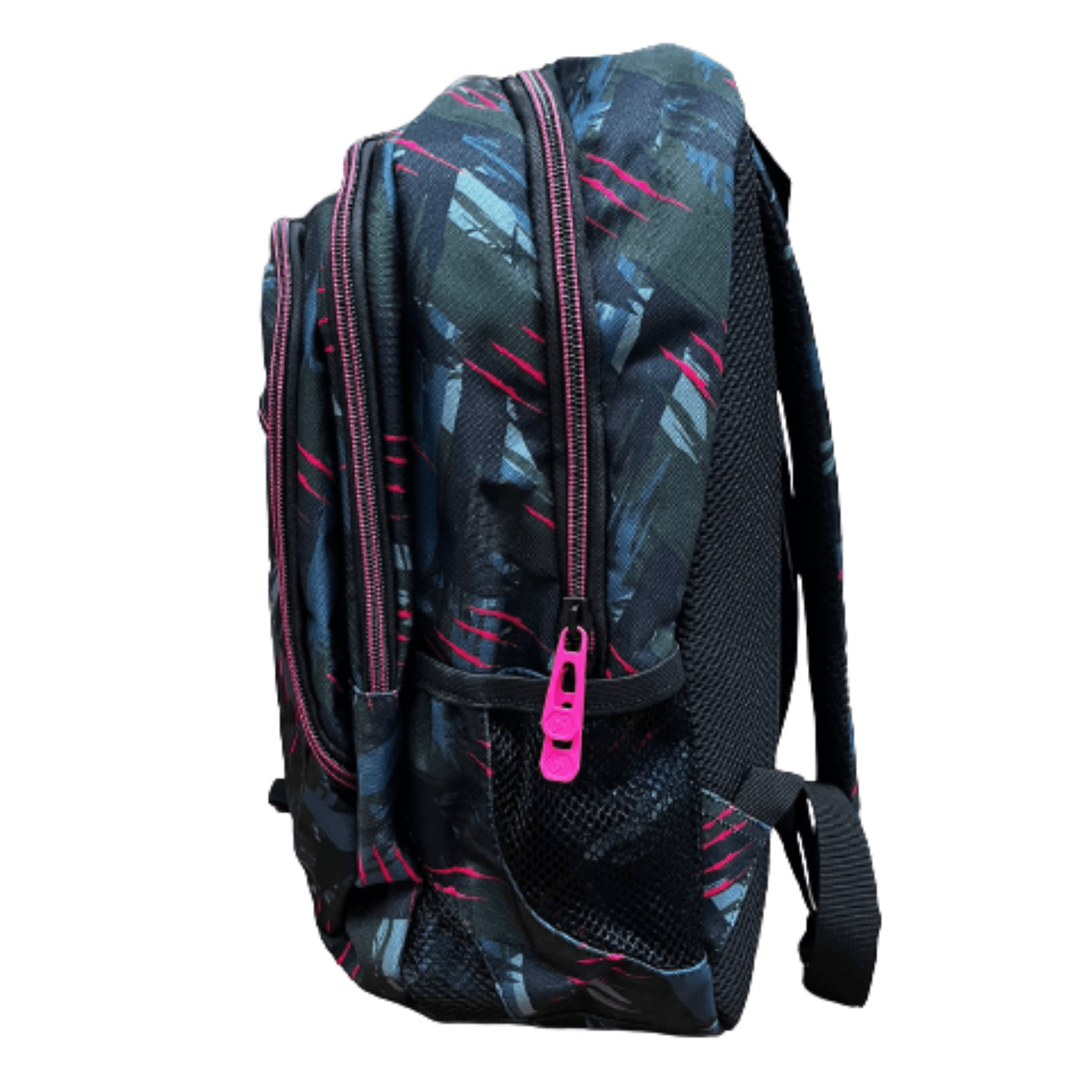 – Mochila con amplio compartimiento central con cierre, con bolsillo doble en el interior.