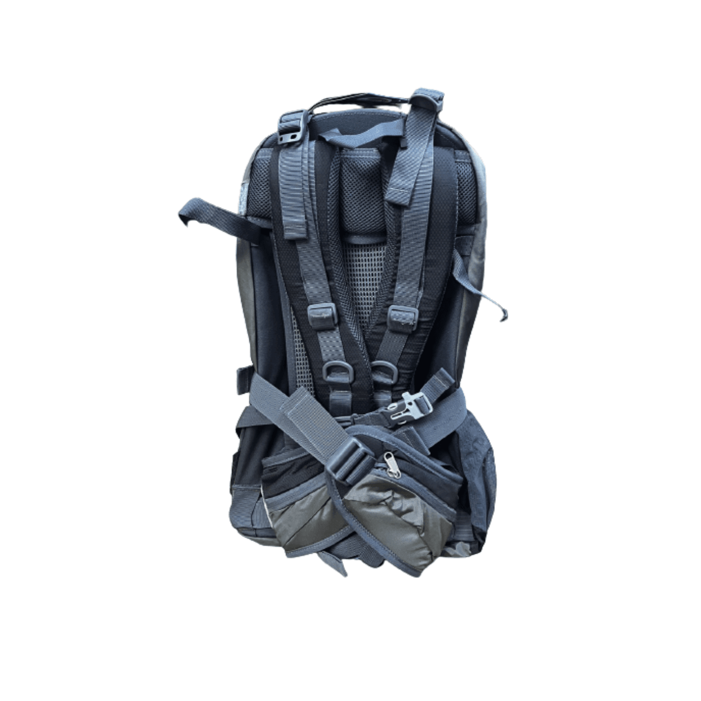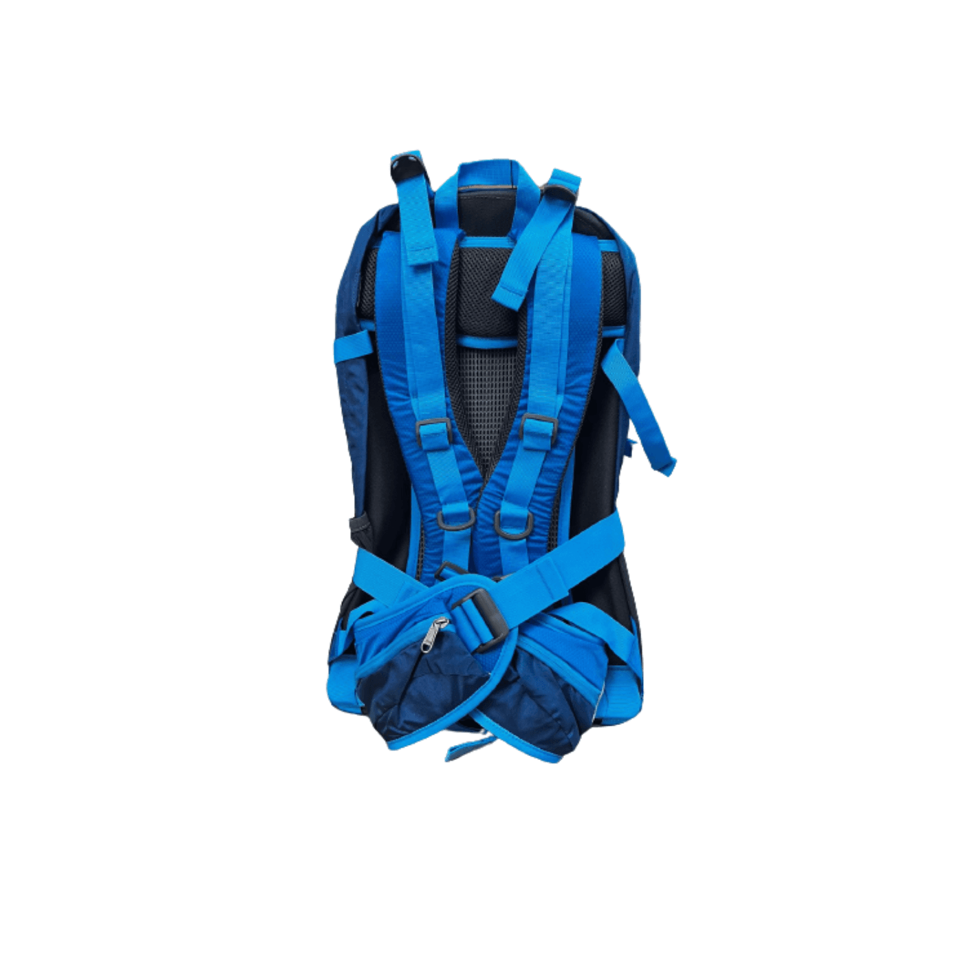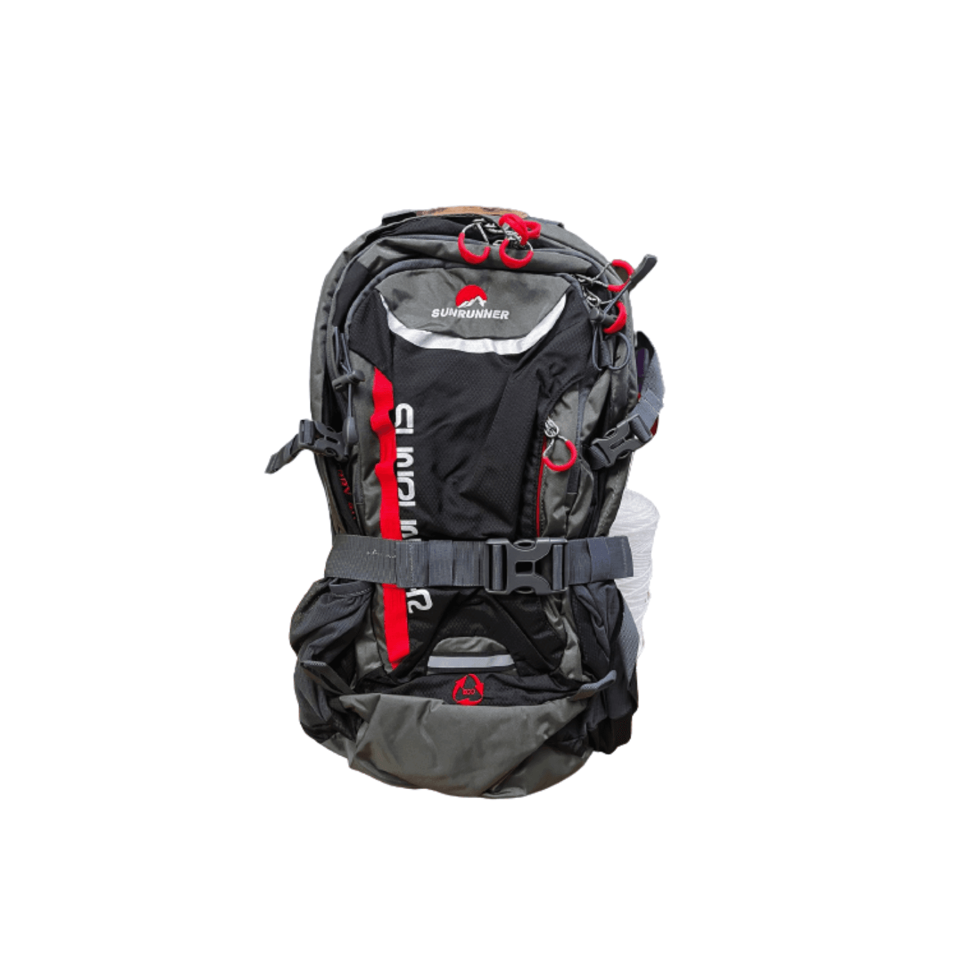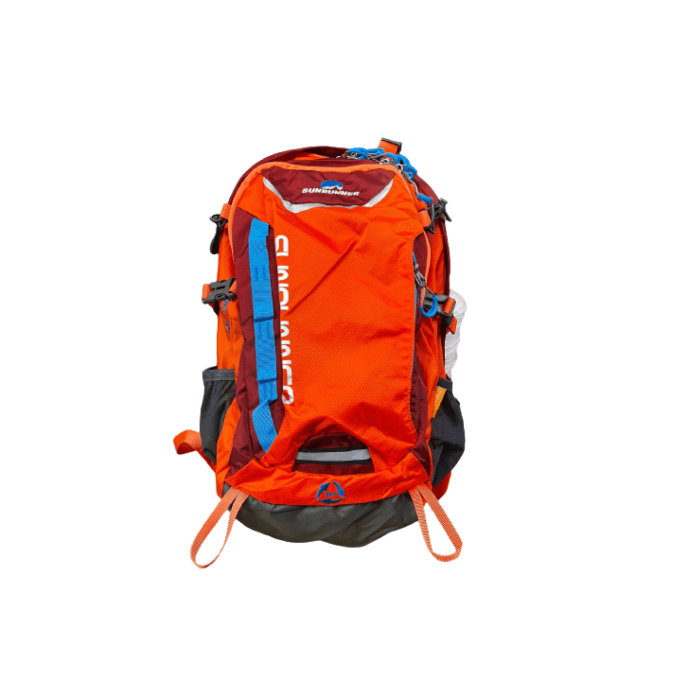 Con sistema de anclajes elasticos en el frente de la mochila, practicos para colgar bastones de trekking y otros articulos.