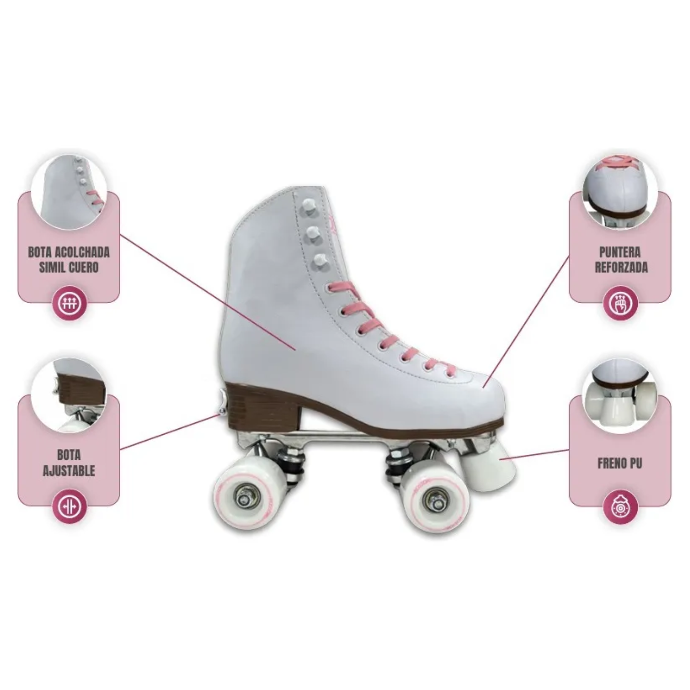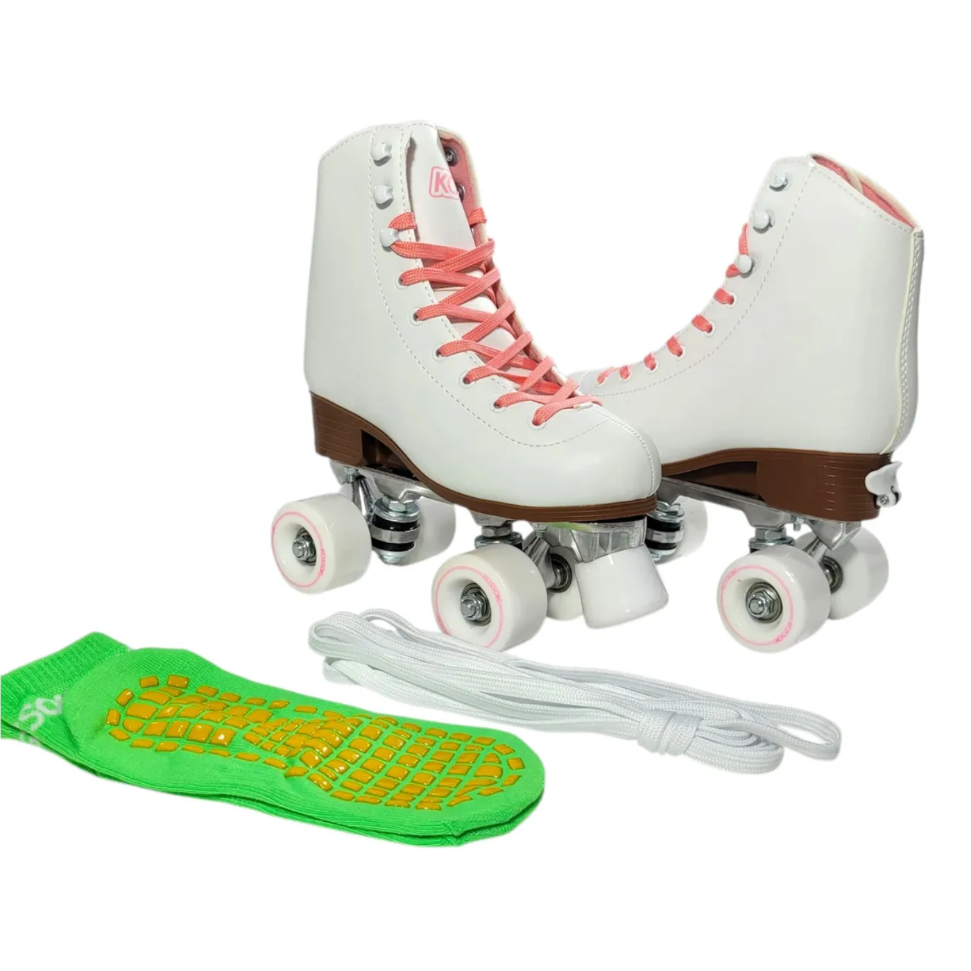 Además, incluye un freno y amortiguación de PU que proporcionan un mayor control en cada movimiento. Para completar, viene con medias antideslizantes y un par de cordones extras para que personalices tu estilo.