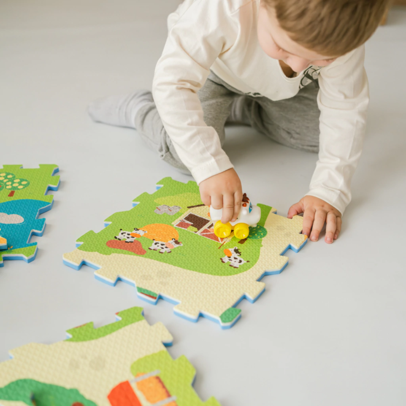 Piso Encastrable De Goma Eva – Alfombra Didáctica La Granja Con Vehículo MultiEva