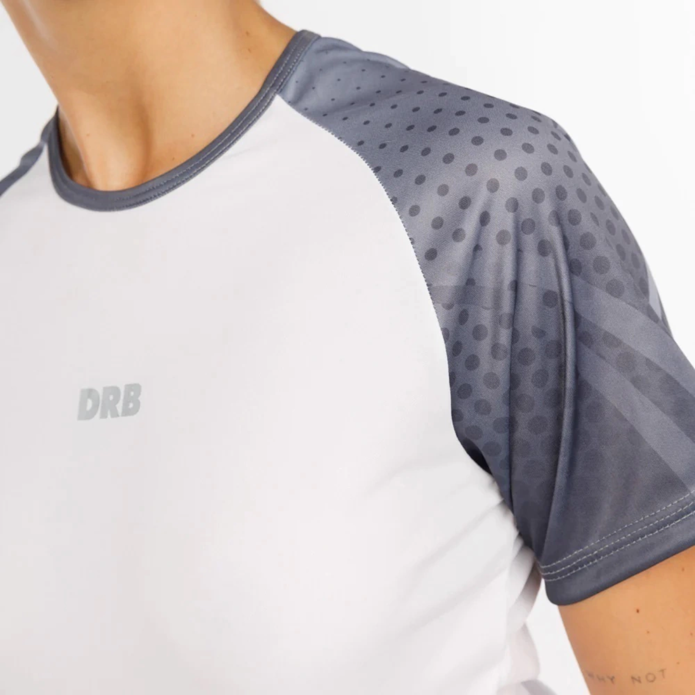 Sentite cómoda en tus entrenamientos con la nueva remera Blair de la línea Athleisure. Confeccionada en un resistente set de poliester blanco y con mangas sublimadas en gris o violeta para que destaquen tus movimientos. Confeccionada con tecnología dry fit que absorbe el sudor y te mantiene seca mientras entrenas. Cuenta con costuras planas que son suaves y reforzadas que evitan la fricción con la piel garantizando tu máxima comodidad.