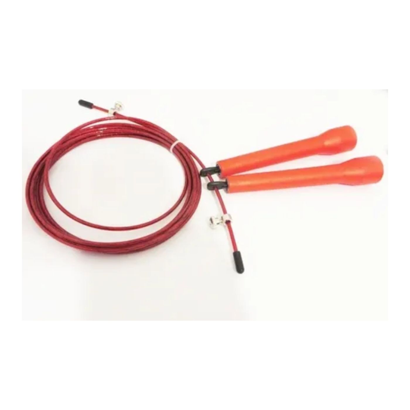 Soga de saltar de cable ajustable con rulemanes y manijas plásticas.