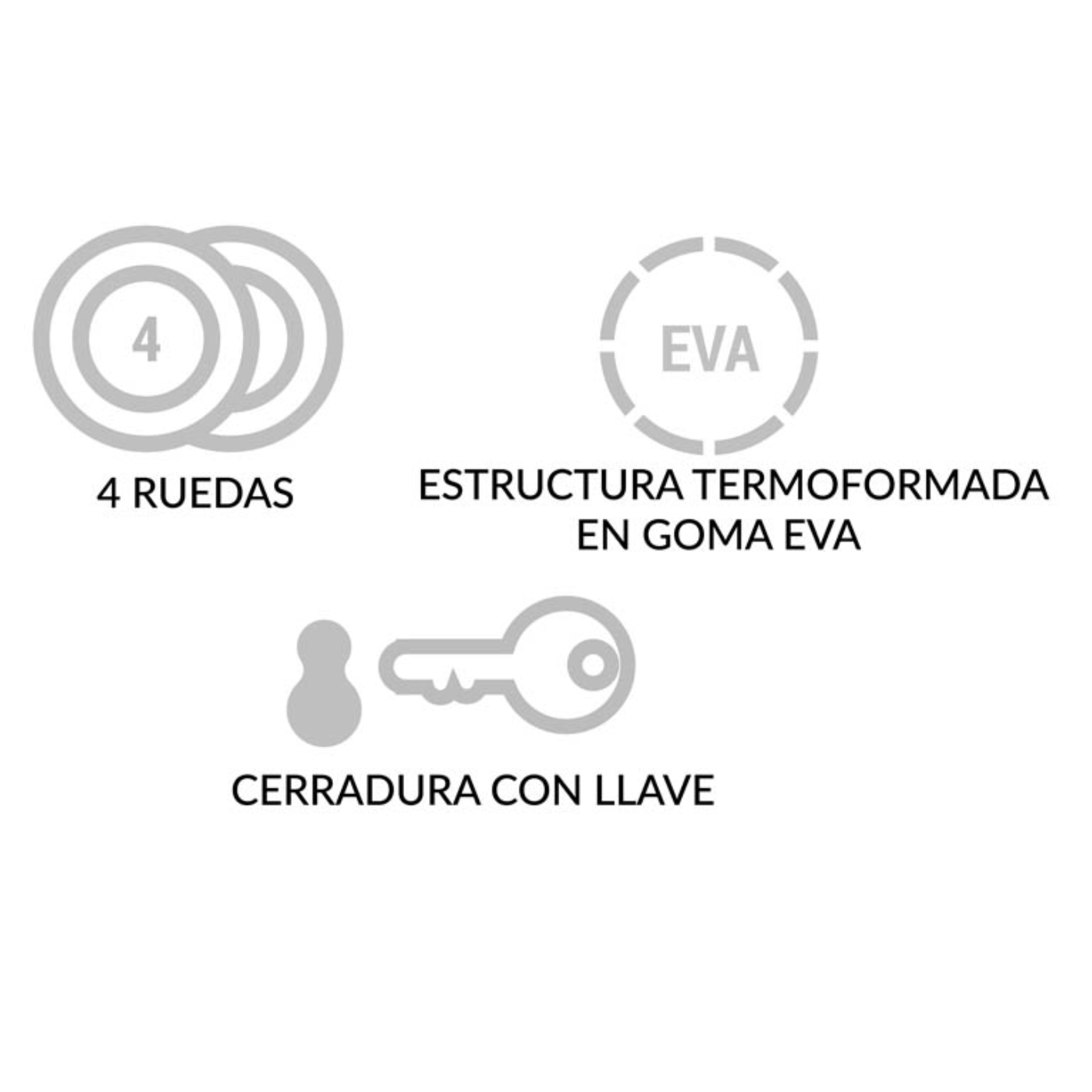 – Medidas: Alto 51cm (mas 6cm de ruedas) x Ancho 37cm x Profundidad 21cm