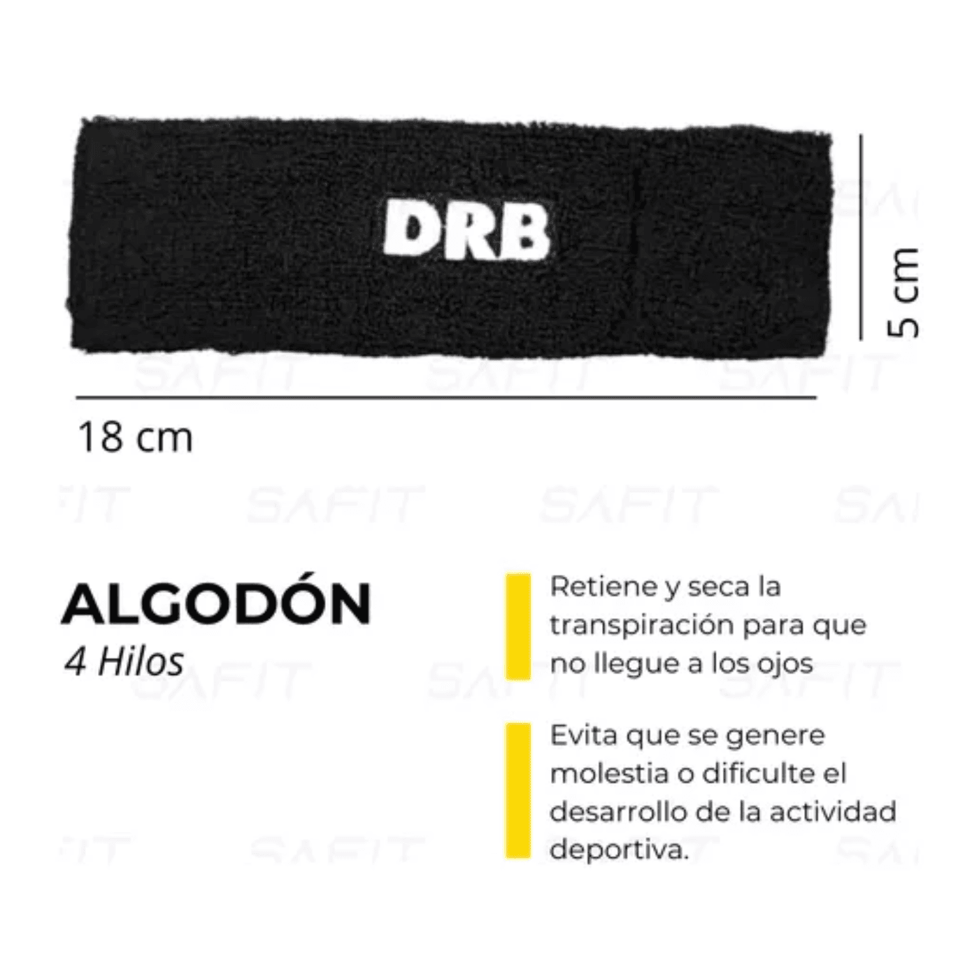 La Vincha DRB brinda comodidad y frescura. Permite la retención y secado de la transpiración proveniente de la cabeza, para que no llegue a los ojos y evitando así que genere molestia o dificulte el desarrollo de la actividad deportiva.